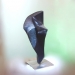 Beeld van zwart serpentijn op RVS sokkel.